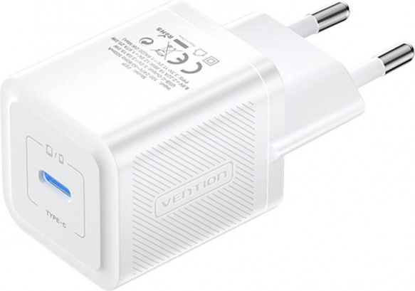 Chargeur secteur compact Vention avec un port USB‑C offrant jusqu’à 20 W de puissance et prenant en charge le chargement rapide PD, PPS, QC, etc. Grâce à la technologie GaN III, il est efficace, sûr et ne chauffe pas, tandis que le trickle charging protège la batterie contre la surcharge. Idéal pour les téléphones, tablettes et écouteurs.