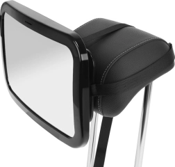Quatre sangles réglables (verticales et horizontales) avec boucles solides maintiennent le miroir de manière fiable sur l’appuie-tête, sans vacillement ni glissement.