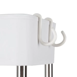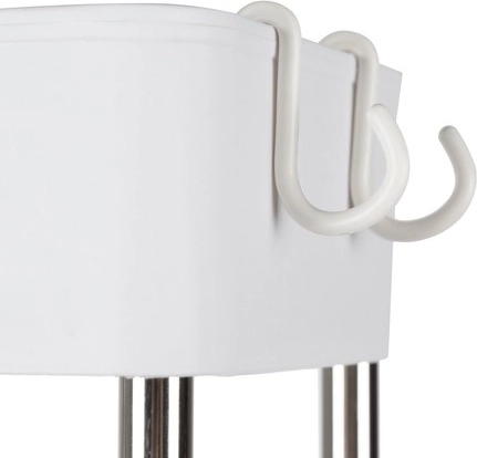 Le fond perforé améliore la circulation de l’air et l’évacuation de l’humidité. Les crochets latéraux offrent une place pour les serviettes et les petits accessoires.