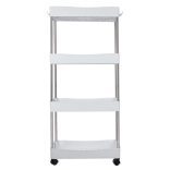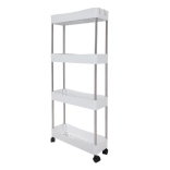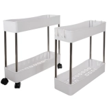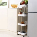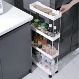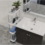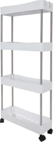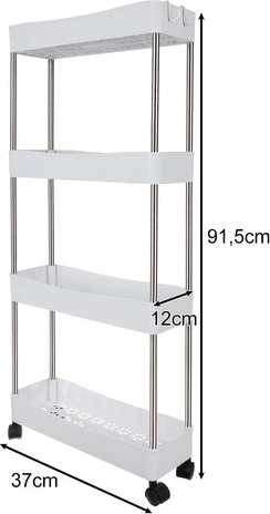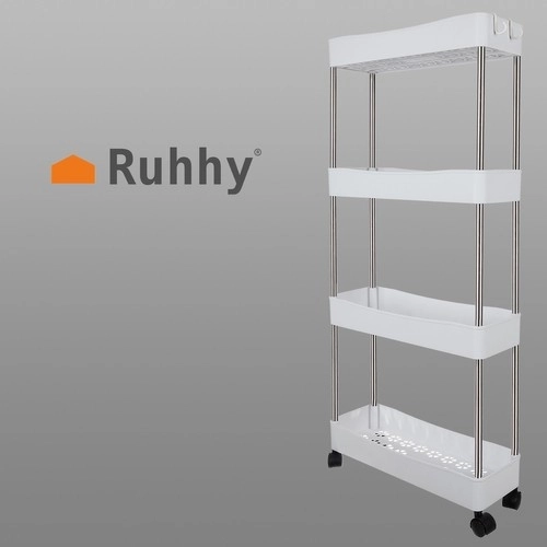 L’étagère mobile RUHHY est une solution universelle pour gagner de la place dans les interstices étroits comme dans les zones courantes de la maison. Grâce à sa conception modulaire, vous pouvez facilement adapter le nombre de niveaux selon vos besoins et l’utiliser dans la salle de bain pour les cosmétiques et les produits d’entretien, dans la cuisine pour les épices et les bouteilles, au bureau pour les documents ou dans la buanderie pour les détergents.
