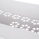La combinaison de raccords parfaitement ajustés en acier inoxydable et de PP de qualité assure stabilité et longévité. Le fond perforé des étagères avec motif floral embellit l’intérieur tout en améliorant l’évacuation de l’humidité. Quatre roulettes pivotantes permettent des déplacements fluides même dans les espaces exigus, et les crochets pratiques sur les côtés gardent serviettes, éponges ou brosses à portée de main.