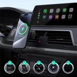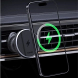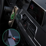 Profitez d’une fixation confortable et stable avec une charge sans fil rapide 15 W. La technologie magnétique du support maintient l’appareil même sur les irrégularités et recharge, par exemple, un iPhone de 15 à 50 % en environ 30 minutes. Le design élégant avec des éléments en verre trempé s’harmonise parfaitement avec l’intérieur du véhicule.