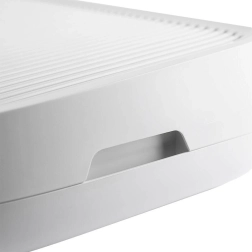 Le plastique lisse se nettoie aisément – il suffit de vider la litière récupérée et de rincer. Le design minimaliste blanc s’intègre parfaitement à votre intérieur.