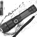Lampe torche LED puissante avec recharge USB, étanche, avec zoom