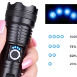 Lampe torche LED puissante en aluminium aéronautique offrant un flux lumineux élevé, une étanchéité et 5 modes d’éclairage pour chaque situation. Grâce à la recharge USB‑C, à la fonction ZOOM et à l’alimentation par batterie 18650 ou 3× AAA, elle est idéale pour les excursions, le camping et l’atelier. Commande confortable à un seul bouton, indicateur de charge et accessoires pratiques, étui inclus, pour une utilisation fiable à la maison comme sur le terrain.