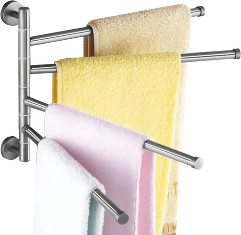 Porte-serviettes argenté stylé idéal pour chaque salle de bain moderne. Quatre bras indépendants offrent flexibilité et espace pour sécher les serviettes.