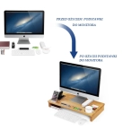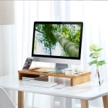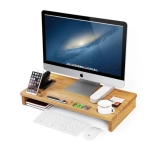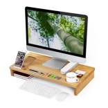 Élégant support d’écran en bambou qui élève le moniteur à une hauteur ergonomique tout en servant d’organiseur pratique. Il offre des compartiments pour téléphone, stylos et petits objets, un emplacement dédié pour un mug et un espace pour le clavier et la souris sous le support. Son aspect naturel et le bambou robuste assurent un bureau ordonné et une posture plus confortable au travail.