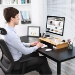 Améliorez votre espace de travail avec un support en bambou alliant ergonomie et organisation. En rehaussant l’écran au niveau des yeux, il réduit la charge sur la nuque et le dos, tandis que ses compartiments bien pensés gardent l’essentiel à portée de main – du téléphone aux fournitures d’écriture, jusqu’au mug.