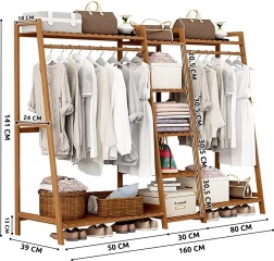 Portant à vêtements double en bambou avec 5 étagères - longueur 160 cm.