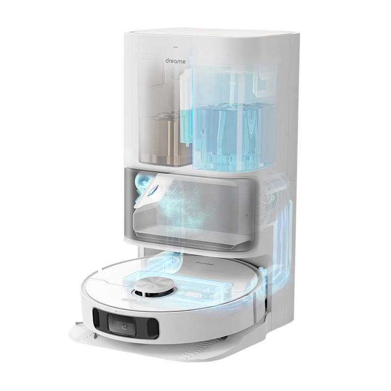 Le Dreame L10s Ultra allie performances de pointe et automatisation totale. Grâce à la technologie DualBoost 2.0, la station vide silencieusement et hygiéniquement le robot, lave et sèche les tampons de serpillière et remplit l’eau ainsi que la solution nettoyante. Avec la reconnaissance des obstacles par IA, une caméra RVB et la cartographie LDS, il planifie des trajets efficaces sans zones manquées.