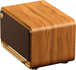 Finition en bois élégante au look rétro, coffret en MDF de 12 mm et poignée dissimulée pour un transport aisé. Jusqu’à 12 heures d’autonomie par charge.