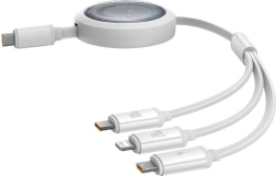 Le câble rétractable universel 3‑en‑1 BASEUS Free2Draw combine les connecteurs USB‑C, Lightning et Micro USB dans un boîtier compact. Il prend en charge la charge rapide jusqu’à 100 W, permet d’alimenter simultanément jusqu’à trois appareils et offre un transfert de données à 480 Mb/s. Grâce au réglage de longueur en 4 étapes, il est idéal en voyage comme sur le bureau, tandis qu’une puce intelligente assure une charge sûre et efficace.