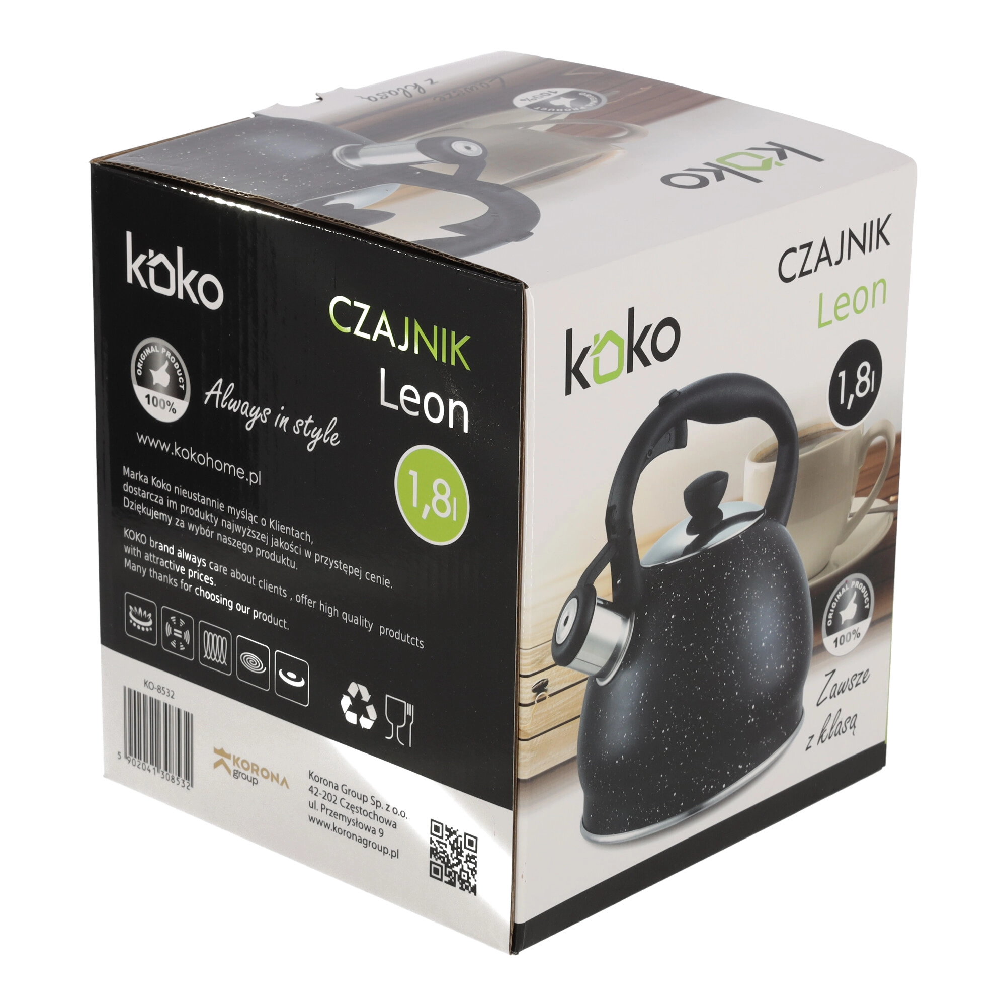 La base de la bouilloire est compatible avec différents types de plaques, y compris l’induction, ce qui en fait un choix universel pour tout foyer. Grâce à sa fabrication de qualité et à son design élégant, la bouilloire KOKO LEON est non seulement pratique, mais aussi un élément décoratif dans la cuisine.