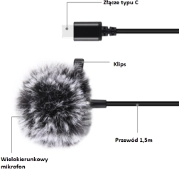 Le microphone est équipé d'un connecteur USB-C, ce qui assure une large compatibilité avec les appareils mobiles modernes. Avec ce microphone, vous obtenez :