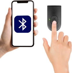 La commande amovible sert de déclencheur photo et de start/stop vidéo. Portée 10–15 m, sans application, pour Android et iOS.