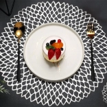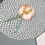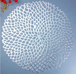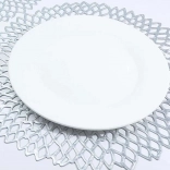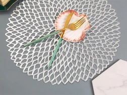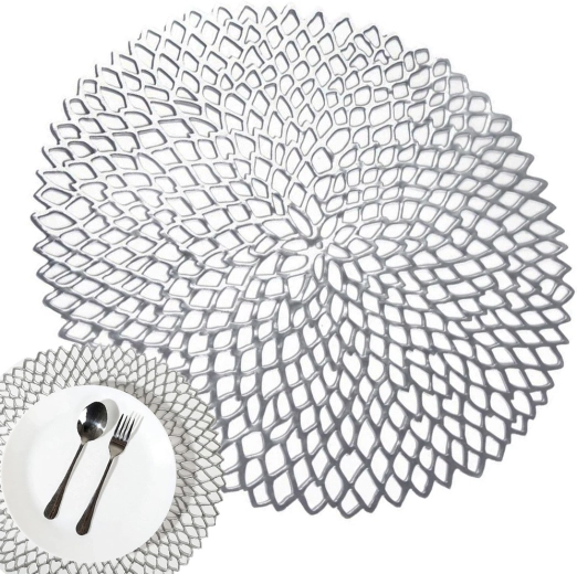 Ce set de table ajouré et stylé, d’un élégant coloris argenté, protège la surface de la table des rayures et des taches tout en constituant un élément décoratif marquant. Grâce à son plastique résistant, il est léger, pratique et imperméable, parfait pour un usage quotidien comme pour les occasions festives.
