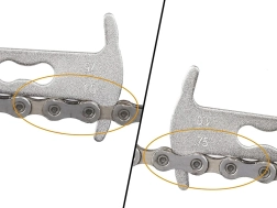La jauge propose un marquage clair à 0,75 et 1,0 – vous identifiez facilement quand la chaîne approche de la fin de vie et quand un remplacement immédiat est nécessaire.