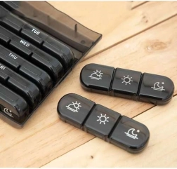 Des marquages clairs pour chaque jour et trois moments de la journée aident à suivre facilement la prise des médicaments.