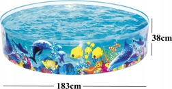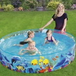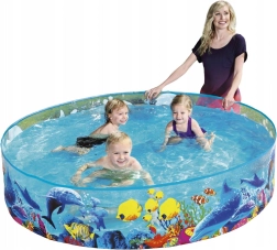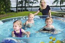 Un diamètre de 183 cm, une hauteur de 38 cm et un volume de 946 l offrent assez d’espace pour se rafraîchir et jouer entre frères et sœurs ou avec des amis.