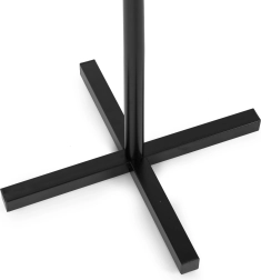 Grâce à la base en croix, le porte-manteau conserve une stabilité suffisante même à charge maximale. Sous la base se trouvent de petits pieds qui protègent et stabilisent le porte-manteau (ils peuvent être dévissés). Ils protègent le sol des rayures et permettent de corriger facilement tout déséquilibre en ajustant les pieds.
