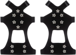 - Pointes métalliques denses — assurance de pas sur la glace et la neige tassée.