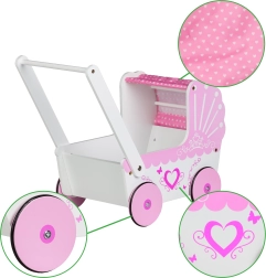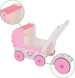 La poussette en bois pour poupées ECOTOYS allie sécurité, stabilité et design enchanteur. De jolis petits cœurs roses, une capote arquée et des courbes harmonieuses apportent du charme à la chambre d’enfant tout en favorisant l’imagination et les compétences sociales lors des jeux d’imitation.