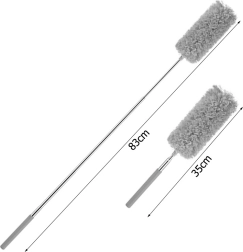 Grâce à sa longueur réglable de 35–83 cm, vous nettoyez facilement les étagères hautes, plafonds, stores vénitiens, cadres ainsi que les zones sous les meubles. La tête est douce pour les supports et convient au nettoyage à sec comme à l’essuyage légèrement humide sans laisser de traces.