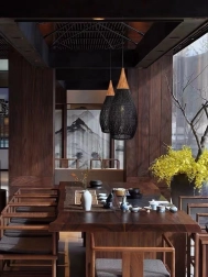 L’association de la texture authentique du rotin et des accents en bois dans une finition noire confère chaleur et élégance à l’espace.