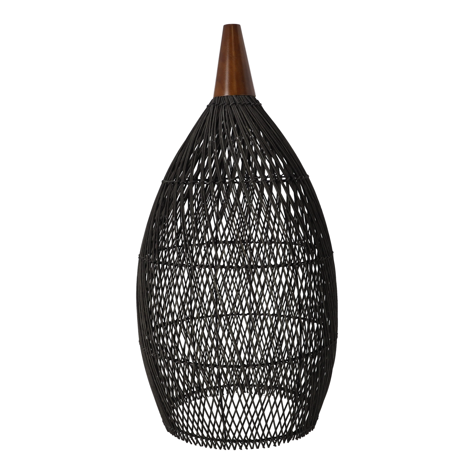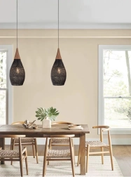 Cette suspension en rotin de 35 cm de diamètre combine la texture authentique d’un matériau naturel avec une finition noire moderne. Elle crée une lumière douce et agréable et devient un élément design au-dessus de la table de salle à manger, dans le salon ou l’entrée.