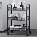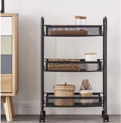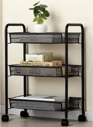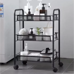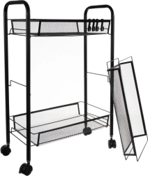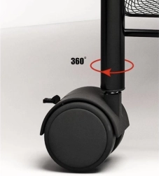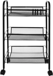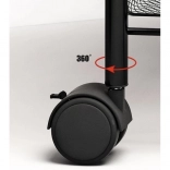 Gardez l’ordre avec style. Cette étagère compacte mais stable en fer peint par poudrage est conçue pour un usage quotidien. Les paniers-étagères ouverts assurent visibilité et circulation de l’air, idéale pour les aliments, les cosmétiques et les produits de nettoyage. Quatre roulettes de qualité permettent un déplacement fluide, dont deux avec frein intégré pour un maintien sécurisé en place.