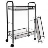 Quatre roulettes pour un déplacement facile, dont deux avec frein pour un verrouillage sûr. Des crochets latéraux offrent un espace supplémentaire pour les torchons, ustensiles ou petits objets.