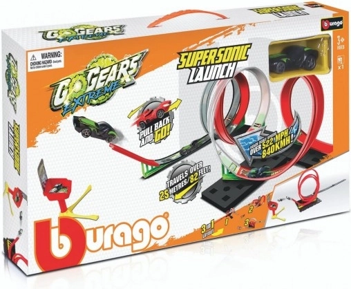 La piste de course Bburago GoGears Extreme SuperSonic Launch 3-en-1 offre aux enfants des sensations de cascades à couper le souffle. Enchaînez plusieurs loopings, accélérez sur la ligne droite et tentez d’atteindre la cible depuis la rampe. Grâce aux trois options d’agencement, adaptez facilement la piste au style de conduite et à l’espace de la chambre d’enfant.
