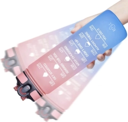 Surveillez votre hydratation toute la journée. La gourde combine une capacité de 1 L avec une graduation en ml (jusqu’à 1000 ml) et en oz (jusqu’à 32 oz) ainsi qu’un planning horaire du matin au soir, pour savoir exactement combien boire et quand. Des phrases motivantes vous soutiennent au travail, au sport et en déplacement.