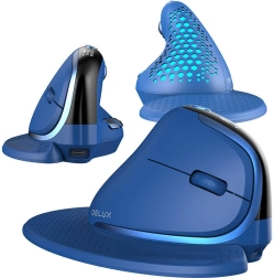 La DELUX M618XSD est une souris verticale conçue pour une prise naturelle et la réduction des tensions des tendons. L’écran OLED intégré affiche l’état de la batterie, le mode de connexion et le DPI actuel (600–4000). Grâce à sa batterie de 1000 mAh, elle tient jusqu’à 2 semaines d’usage courant et se recharge via USB‑C.