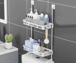 Cette étagère murale au‑dessus des toilettes est un excellent choix pour les petites comme pour les grandes salles de bains. Ses deux niveaux offrent suffisamment d’espace de rangement pour les flacons, savons, serviettes ou brosses, tout en gardant tout à portée de main. Son design minimaliste blanc s’harmonise facilement avec la plupart des intérieurs.