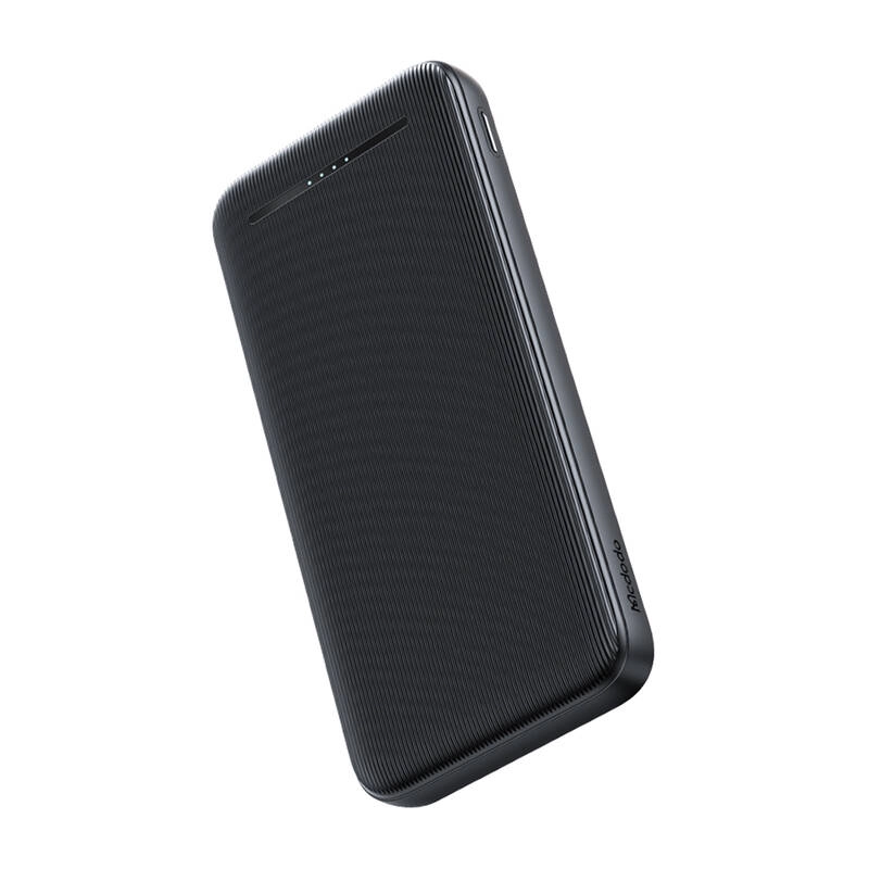 Batterie externe compacte Mcdodo d’une capacité de 10 000 mAh avec deux sorties USB-A pour recharger deux appareils simultanément. Elle offre une puissance jusqu’à 10,5 W, des indicateurs LED clairs de l’état et un fonctionnement sûr grâce à des protections avancées contre les surtensions, la surchauffe et les courts-circuits.