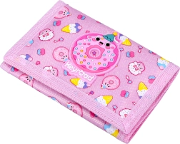 Le portefeuille est disponible en 3 variantes : bleu avec fraise, rose avec donut et rouge avec petit lapin. Ses dimensions compactes sont idéales pour le cartable, le sac à dos ou la poche.