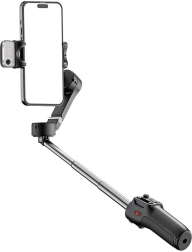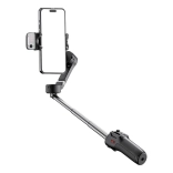 Le gimbal est léger et facile à transporter grâce à son design pliable. La tige télescopique intégrée de 205 mm permet un cadre plus large et la télécommande peut être utilisée séparément ou fixée, où elle se recharge également.