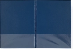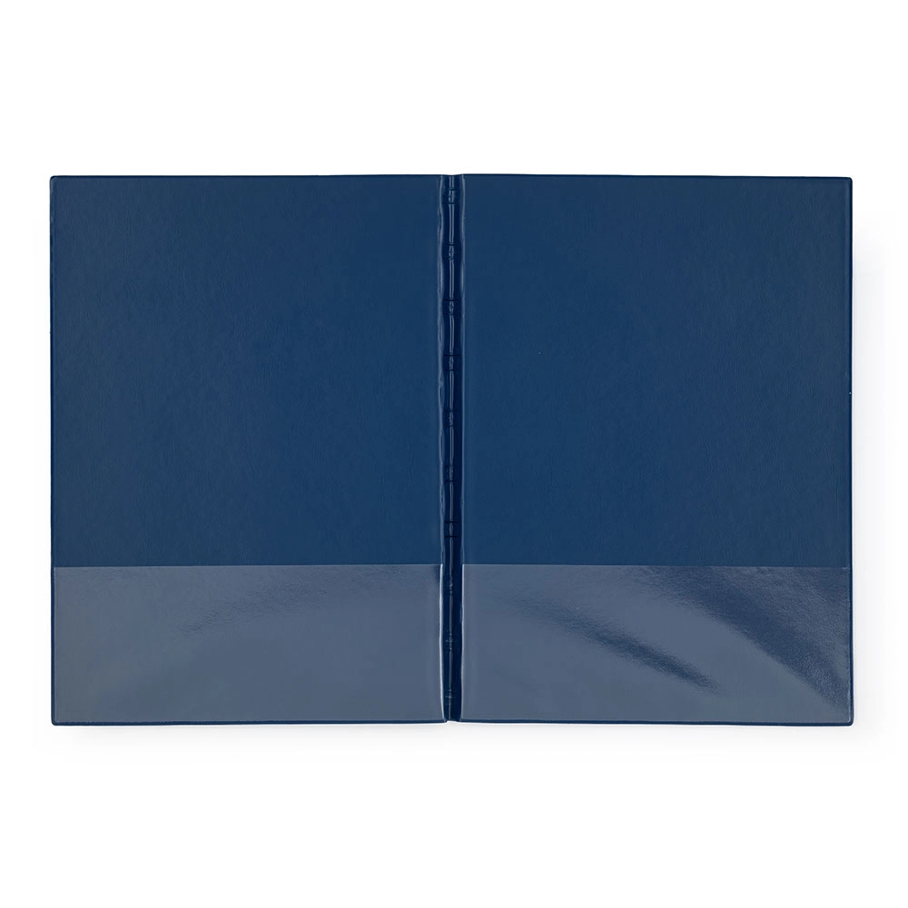 Chemise de bureau pratique au format A4 de couleur bleue, au design classique, pour un rangement clair des documents. À l’intérieur, elle offre des poches latérales transparentes pour conserver en sécurité les feuilles et supports promotionnels, idéale pour l’archivage et les présentations.