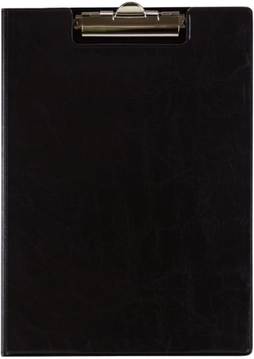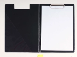 Sous-main fermable avec clip en métal, fabriqué en carton extra robuste avec poche intérieure transparente.
