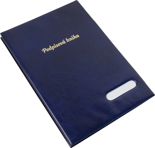 Élégant livre de signatures bleu qui garde vos documents toujours bien organisés et en sécurité. Grâce à sa surface brillante, son dos en toile flexible et ses 14 feuilles séparatrices, il offre une protection fiable et une organisation facile.