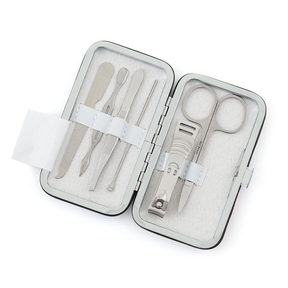 Set de manucure de voyage comprenant six outils indispensables au fini argenté. Idéal pour le sac à main ou les déplacements.