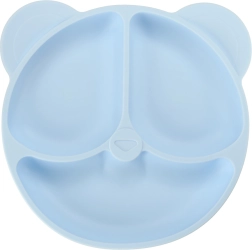 Assiette en silicone de qualité alimentaire avec plusieurs compartiments permettant un service clair et encourageant l’autonomie à table. Sa forme ludique d’ourson attire les enfants.