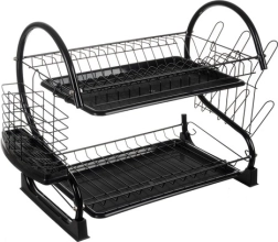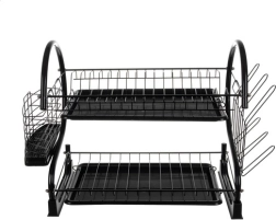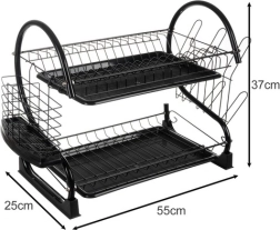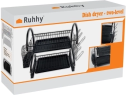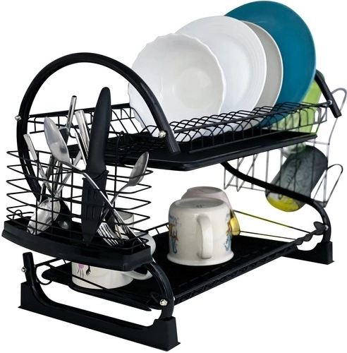 Révolutionnez le séchage de la vaisselle avec l'égouttoir à deux niveaux Ruhhy, qui offre une construction solide en métal avec un look noir moderne. Grâce à sa conception à deux niveaux, utilisez pleinement l'espace de votre cuisine, le niveau supérieur est idéal pour 16 assiettes, tandis que le niveau inférieur est parfait pour les bols, tasses et verres. Chaque niveau est équipé de son propre plateau pour recueillir l'eau.