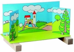 Le théâtre magnétique sur le thème du château transforme la table en une petite scène où les enfants animent facilement les personnages à l'aide des baguettes magnétiques de guidage. Les figurines en bois, dotées d'un aimant intégré, glissent en douceur sur la scène et, grâce aux deux décors, ils peuvent varier les histoires en toute simplicité.