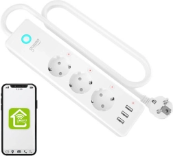 La prise WiFi intelligente Gosund P1 Plus offre 3 ports USB‑A de 15 W pour une charge rapide et 3 prises AC, toutes avec protection intégrée contre les surtensions. Via l’application, vous pouvez contrôler chaque prise individuellement et suivre la consommation en temps réel des appareils.