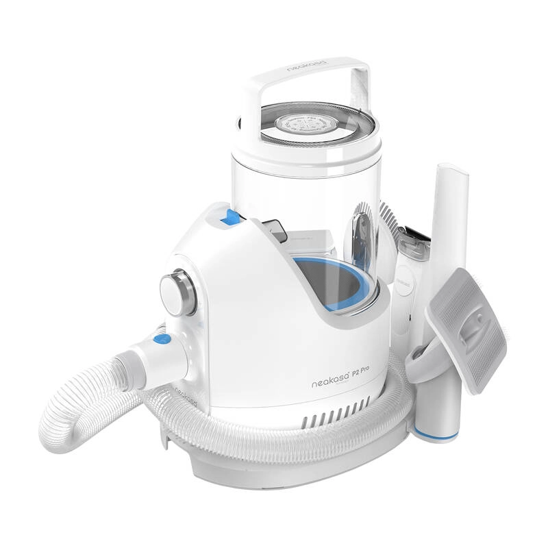 Neakasa P2 Pro est un kit complet de soin du pelage, associant un aspirateur puissant à une tondeuse et des brosses. Grâce à une forte puissance d’aspiration et à un réservoir d’1 litre, vous entretenez le pelage sans désordre et avec un stress minimal pour votre animal. Le fonctionnement silencieux et les lames arrondies et sûres garantissent une coupe confortable et sécurisée.
