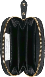 Portefeuille femme élégant et compact en cuir véritable, de couleur noire, pour un usage quotidien. Il offre une poche principale zippée au rangement clair et 5 compartiments pour pièces et cartes. Il se glisse parfaitement dans un petit sac et, grâce à son matériau résistant, il dure longtemps.