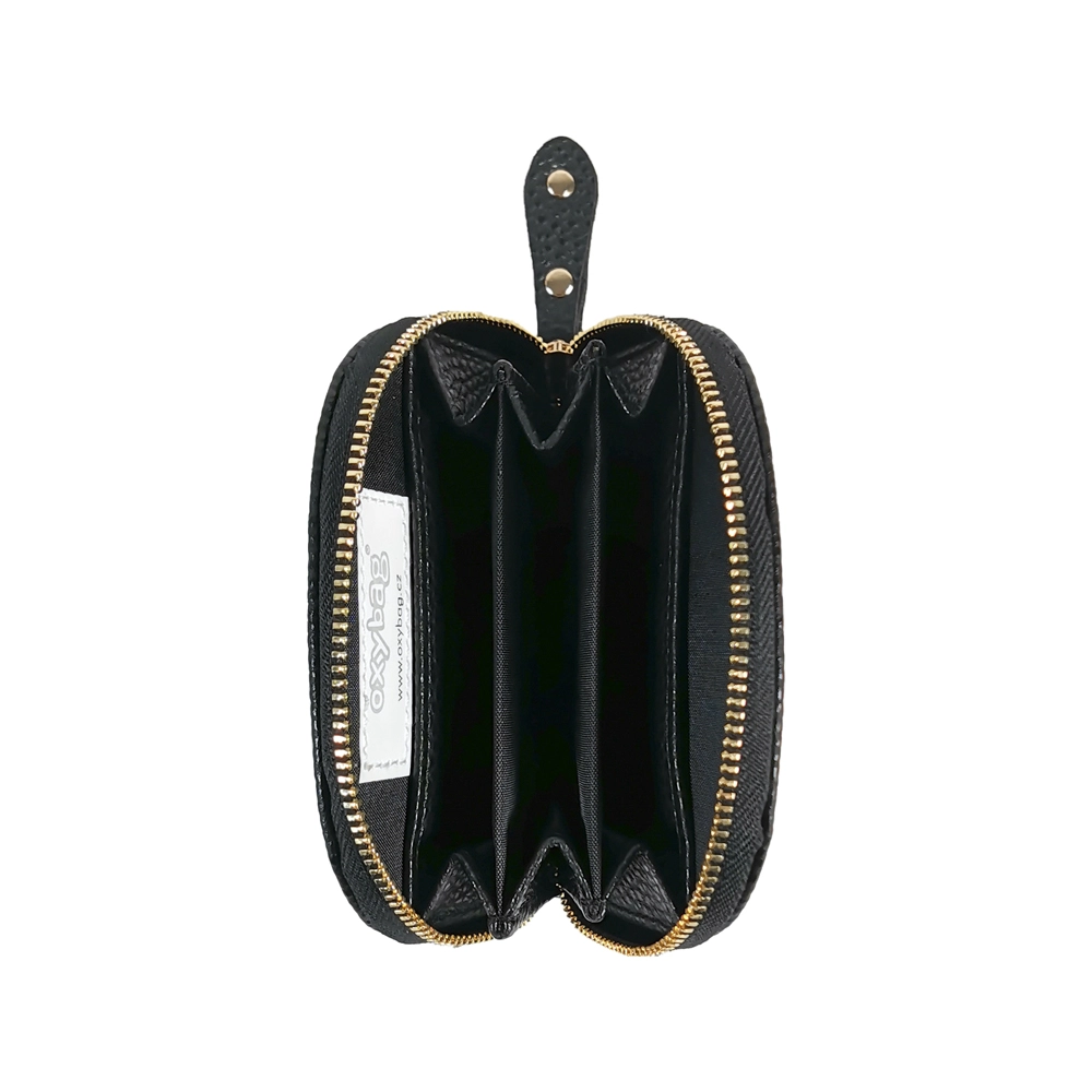 La poche principale zippée sécurise le contenu et, grâce à son agencement bien pensé, vous aurez toujours vos pièces, billets et cartes à portée de main. La couleur noire s’accorde avec toutes les tenues et la surface en cuir apporte une touche élégante et intemporelle.