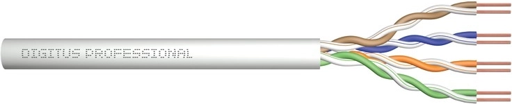 Câble d’installation U/UTP non blindé, idéal pour les réseaux télécoms et de données internes, offrant robustesse et fiabilité grâce à une gaine PVC et à un fil de cuivre de haute qualité.